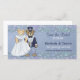 Adorable Braut und Bräutigam Teddy Bären. Dieses hübsche Paar ist in ihrem Hochzeitsgeschirr gekleidet. Er in seinem Smoking und Top Hut und sie ist in ihrem Hochzeitskleid und Schleier. Der schöne hellblaue Hintergrund hat ein gedämpftes Blumenmotiv mit einer schönen Blumenzarte. Der gesamte Text steht Ihnen zur Verfügung, um ihn anzupassen.