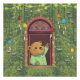 Eine niedliche Abbildung eines Teddybären, der sich farbenfrohe Windspiele anschaut