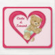 Teddybär, der auf einem tiefen rosa Herz sitzt. Dieser kleine Bär bringt eine Nachricht für den Valentinstag oder das ganze Jahr über. Der Text sagt Niedlich und intelligent.