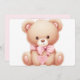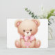 Créez une invitation de baby shower affectueuse avec le rose comme couleur focale. Idéal pour les fêtes de la douche pour bébé fille. L'avant est orné d'un ours en peluche mignon et aimant portant un arc rose avec un texte que vous pouvez customiser. Le dos a les détails de la douche pour bébé fille. Une partie de la collection Teddy Bear Pink Design. Utilisez le modèle pour créer votre propre invitation d'ours en peluche baby shower rose.