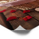 This poster shows a cozy scene with teddy, roses, and sweets.