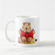 Niedlicher Bär, der auf einem Bleistift liest ein Buch sitzt.