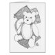 Stift- u. Tintenskizze eines Teddybären, der auf bequemem Patchwork sitzt, pillows