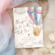 Feiern Sie die Taufe Ihrer bezaubernden Zwillinge mit dieser süßen Taufeinladung für Zwillinge, Junge und Mädchen. Das Design zeigt eine weiche Illustration eines Teddybären im Heißluftballon, kombiniert mit moderner, zeitloser Typografie, was es perfekt für eine bedeutungsvolle und freudige Feier macht.