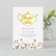 Eine Teekanne mit "Tee für zwei" Typografie mit realer Goldfolie. Auf dem Grund befinden sich zarte, Aquarellfarben gemalte Wildblumen. Ideal für Ihr zweites Geburtstagstee-Party!