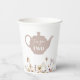 Ein rosa Teekanne mit "Tee für zwei"-Typografie im Inneren, mit zarter Aquarellmalung von Wildblumen am Boden. Ideal für Ihr zweites Geburtstagstee-Party!