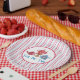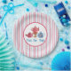 Dieses skurrile Design wird der Hit aller kleinen Mädchen Tee Party. In der Mitte des Designs gibt es drei lustige Teeköpfe auf einem Hintergrund mit koordinierenden Streifen.