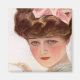 Vintage Kunstwerke von jungen hübschen dunkelhaarigen Frauen mit rosa Bug mit einer Teetasse