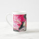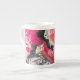 Eine einzigartige Kaffeemaschine-Tasse mit einem originalen Werk in Rosa, Gold und Schwarz von WestJack Studio. Designed in BC.