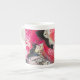 Eine einzigartige Kaffeemaschine-Tasse mit einem originalen Werk in Rosa, Gold und Schwarz von WestJack Studio. Designed in BC.