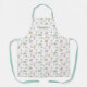 Eine wunderschöne Schürze mit handgezeichnet Illustrationen, darunter ein Tee-Set mit Teetöpfen und Tassen, eine Dessertplatte mit Kuchen, ein Keks und Kuchen mit Besteck und dampfendem Tee und Kaffee. Ideal für Hi-Tee-Cafés, Teemaschinen zum Tragen bei Shows, Teehäuser und für die Person, die Sie die Schürze geben oder Ihren Firmennamen hinzufügen.