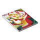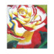 mit originellem Kunstdesign aus Aquarellmalerei von Sacha Grossel aus der Blume von rotem und gelbem Hybrid-Tee vor grünem Hintergrund. Dieses helle und zeitgenössische Kunstdesign ist von einem großen, nah fokussierten Makro-Blumendesign eines botanischen Motivs in leuchtendem, lebendigem, bunten Stil für Floristen und Rose überall.