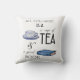 "Alles, was Sie brauchen, ist eine Tasse TEA und ein gutes BUCH" Worte erscheinen mit einem Aquarell-Gemälde einer Teetasse und ein Buch in blau-weiß, um dieses gemütliche Lesen themed throw Kissen zu machen.
