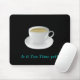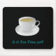 weißer Teacup auf hinterem Hintergrund fragt die Frage "ist es Tee-Zeit schon?"