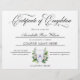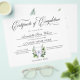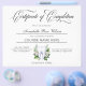 Modernes und elegantes Teeth Whitening Certificate of Completion Award. Dieses wunderschön gestaltete Zertifikat enthält den Begriff "Abschlusszeugnis" in eleganter Typografie, neben den Details des abgeschlossenen Kurses, des Namens des Empfängers und des Datums. Die Vorderseite ist mit einem ausgeklügelten Wasserfarbenzahlopo geschmückt, wodurch ein poliertes und berufliches Aussehen entsteht. Dieses Zertifikat ist perfekt für die Anerkennung von Erfolgen in Zahnweißkursen geeignet und fügt jeder Leistung eine Touch Klasse hinzu.