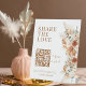Ermuntern Sie die Gäste, besondere Momente mit unserem eleganten Calligraphy Rustic Share The Liebe QR Code Sign zu erleben. Dieses moderne, minimalistische Schild besticht durch einen stilvollen QR-Code für eine einfache gemeinsame Nutzung von Social Media-Fotos, der mit hellen und kühlen Terrakotta-Flora für eine rustikale böhmische Touch besticht. Dieses Zeichen ist perfekt für Ihren Hochzeitsempfang und verbindet Eleganz mit Einfachheit und bietet eine schicke Art, Ihre Gäste zu begeistern. Egal ob Sie ein rustikales oder modernes Event veranstalten, dieses Schild verstärkt Ihr Hochzeitsdekor und macht das Teilen von Erinnerungen einfacher denn je.