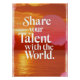 "Inspirier durch dein Geschenk und feiere deine einzigartigen Fähigkeiten mit unserem Weltposter, dein Talent zu teilen. Dieses befähigte Design ermutigt Sie, Ihre Fähigkeiten, Leidenschaft und Kreativität lassen und erinnert Sie daran, dass Ihre Beiträge den Power haben, andere inspirieren und zu verbessern. Ideal für Künstler, Musiker, Künstler und Schöpfer aller Art, dient es als täglicher Aufruf, Ihre Geschenke mutig und stolz zu teilen. Dieses Plakat, das auf hochwertigen Materialien mit lebendigen und motivierenden Bildern gedruckt wurde, ist eine hervorragende Ergänzung zu Studios, Bühnen oder jedem Raum, in dem Träume die Bühne in den Mittelpunkt stellen. Ein nachdenkliches Geschenk für Visionäre und Gönner - lass dieses Kunstwerk inspirier dir, dein Talent mit der Welt zu teilen und bleibende Wirkung zu erzielen."