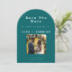 Annoncez votre étape importante de 2026 avec la carte de sauvegarde de date de photo en arc moderne, une pièce signature de la collection The Editorial Arch chez Retro Remix. Ce design mélange parfaitement votre portrait de fiançailles favori avec les lignes architecturales audacieuses et la couleur héroïque de 2026 : le sarcelle transformatif.