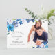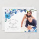Élégantes cartes photo de save the date de mariage floral bleu pastel conçues pour être rapidement et facilement personnalisées selon les spécificités de votre événement.