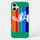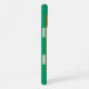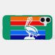 iPhone 16 Plus Fall mit einem Design mit der Flagge von St. Petersburg, Florida. Eine Fahne mit orangefarbenen, roten, grünen, blauen und marineblauen Streifen mit einem Symbol für das weiße Pelikan