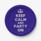 Basierend auf dem ursprünglichen Behalt Calm und ... Plakat dieser Creme und blauen Behalt Calm und Party On Paper Plate verfügt über einen maßgeschneiderten Schriftart, der eng mit dem Original.