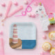 Eine rosa und weiß gestreifte Leuchtturmlandschaft. Dieses Design wirkt auf diese Paper-Teller sehr effektiv