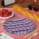 Fügen Sie Ihrem Party stilvollen Flair mit Tellern aus Papier mit festlichem lila-weißem Streifenmuster diagonaler Linien in verschiedenen Breiten hinzu. Klicken Sie auf den Link "Rocklawn Arts", um das Design Varied Lila und White Stripes zu anderen Artikeln zu sehen. Digitales Bild. Copyright © 2017 Claire E. Skinner. Alle Rechte vorbehalten.