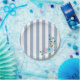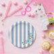Teller, blaue Streifen, blauer Blumenstrauß, Blume Pappteller