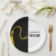 Creative Abschluss Glückwunschs Party Teller mit klassischen schwarzen und goldenen Kappe. Bearbeiten Sie den Text, um den Namen des Senior Class Grades hinzuzufügen.