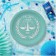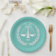 Teller zur Jurastudien-Graduierung oder zur Juristenfeier mit einer Skala von Gerechtigkeit und lustigen Zitaten. Um Text zu personalisieren, fügen Sie den Namen Ihres Lieblingsgrades, Anwalts oder Anwaltskanzlei hinzu.