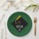 Personalisierte Graduiertenparty-Teller mit klassischem Schwarz-Mütze- und Goldtassel-Design auf grünem Hintergrund. Bearbeiten Sie Text, um den Namen und das Jahr Ihres Lieblingsgrads hinzuzufügen.