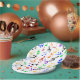 Farbenfrohe musikalische Noten auf einem maßgeschneiderten Teller. Passende Servietten sind erhältlich. Ideal für ein Party! Design von Heard_, und 369.