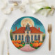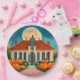 Autum/Fall Moon Papier Teller sind cremefarben, blau, orange, braun.
