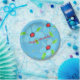 Ein moderner Teller mit hellblauen Blumengrafiken, roten Akzenten und farbigen Schwarz. Der Geburtstagstext kann auf jede Nachricht personalisiert werden und der blaue Hintergrund kann auf Ihre Lieblingsfarbe umgeschaltet werden.