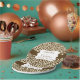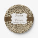 Chic, modern, hübsche Wildtier großen Katzen Leopardendruckpapier Teller in braun, braun, pfirsichfarben mit braunem Streifen und weißem Rand mit braunem Banner, die Sie mit den Namen des Ehepaares und dem Hochzeitstag personalisieren können!