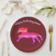 Wild rosa Pferde Silhouette zeichnend auf Tellern auf Papier. Benutzerdefinierte Hintergrundfarbe. Perfekt für die Geburtstagsfeier von Jungen. Einfach Text und Namen hinzufügen.