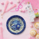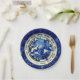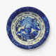 Papier Party Teller mit dem Bild von Vintagen nautischen Fisch-Design in den Farben Blau und Weiß.
