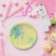 Niedliche pastellfarbene Palmenblätterpapiere Teller. Das kommt von einem Acrylgemälde, das ich auf der Leinwand gemacht habe. Eine lustige Ergänzung zu einem Party im Sommer.