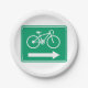 Radwege werden mit einem Fahrrad und einem Pfeil nach rechts signiert. Dieses Design wirkt auf diese Paper-Teller sehr effektiv