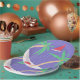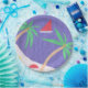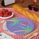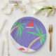 Diese Teller sind mit einer Abbildung einer Strandlandschaft mit Sonnenschirmen, Palmen und einem blauen Ozean mit rotem Segelboot gestaltet.