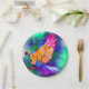 Schöne Teller aus Papagei-Papagei-Papeln, tropisch exotischer Vogel MIGNED Aquarellmalerei