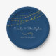 Navy Blue und Imitate Gold Foil String Lights Hochzeiten Teller für einen eleganten Hochzeitstag Empfang oder Probe Dinner. Name und Datum können auf dieser Platte aktualisiert werden.