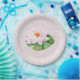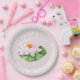 Ideal für thematische Feiern, Geburtstage, Babyduschen, etc. Papiertassen verfügbar. Hinter dem Schmetterling und dem Blumendesign zeigt sich ein Schleier aus blauen Konfetti. Anpassbare Hintergrundfarbe.