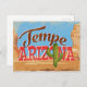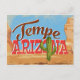 Tempe Arizona neo Vintage Reise Poster Wandkunst im Cartoon Retro-Stil mit der Wüste, einem Kakteen und Rot-Felslandschaft.