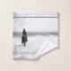 Temps orageux - Un cavalier solitaire sur la plage avec une mer orageuse, en noir et blanc