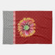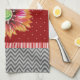 Cette aquarelle de ma fleur de couverture indienne orange et rose est stupéfiante contre l'arrière - plan rouge pointillé. Le design de la bordure en chevron gris est tendance, moderne et fort. Conçu à l'origine pour être jumelé à la serviette de cuisine rouge gris-orange moderne avec coloration inversée.