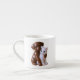 A tender friendship scene in figurine-style 3D. A glossy chocolate puppy gently “protects” a white kitten with a side hug. Expressive eyes, smooth curves, and reflective highlights create a polished collectible look. Placed in a bright tabletop-like environment with soft shadows and clean space, it feels wholesome, gentle, and emotionally warm.