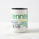 Tennis ist Liebe, Freunde, Feinde, Schläger, Bälle, das Gericht, das Netz und die Anschläge. Teilen Sie Ihre Liebe von Tennis mit dieser Schlüsselwort-Tasse des Tennis, die durch Tennisessities hergestellt wird.