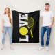 Retro-Stil Grunge "Liebe" Textdesign mit gelben Tennisball und Schlägerdekoration