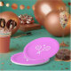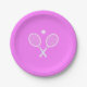 Weiße Tennisschläger. Aktives Lebensmotiv. Magenta oder tiefrosa Hintergrund. Geschenk für Tennisliebhaber.